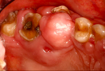 A 65-year-old female on antihypertensives and immunosuppressants presented with severe gum swelling, inability to chew, and difficulty maintaining oral hygiene. This led to multiple decayed and periodontally compromised teeth, worsening her overall condition.